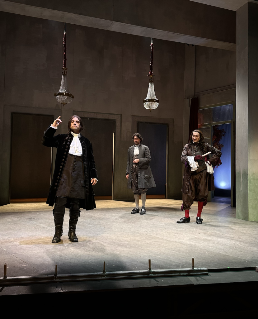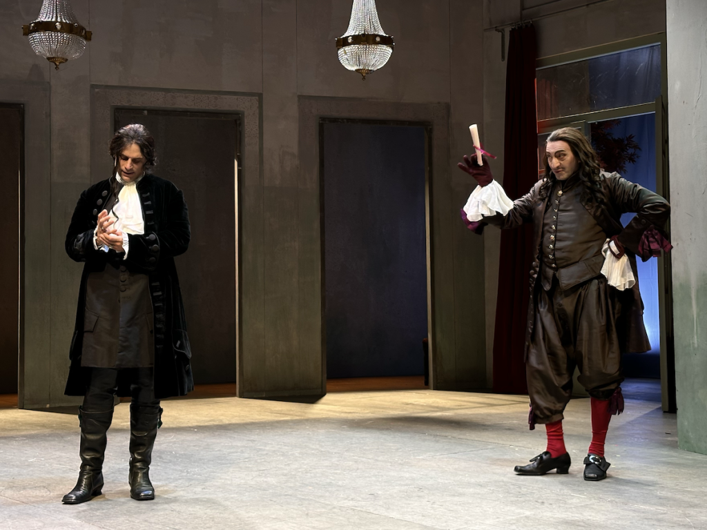 Da questo nasce la mia volontà di mettere in scena Il misantropo. Le prime battute vengono volutamente dette senza sipario per non dividere la scena dalle parole. Volevo andare all’essenza del testo, liberarlo di tutti gli orpelli e accompagnare lo spettatore al piacere dell’ascolto senza distrazioni.